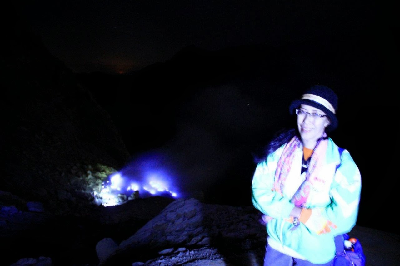 Oo-rahh!!! Sampai euy. Memang kami tidak sampai di titik terbawah, tapi di sinilah kami. Berdiri menikmati api biru dari kejauhan dan Wow!!! Sebuah fenomena alam yang sungguh luar biasa. Serunya dalam trip ini, tripod sudah berdiri, VJ mulai beraksi dengan kameranya. Masing-masing kebagian foto bersama momen api biru. Seru!
